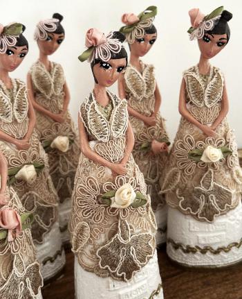 • Kurdele, Fransız Danteli boncuk gibi malzemeler ile süsleme yapılmıştır.