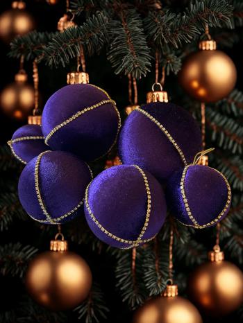 Mor Kadife Çam Ağacı Süsü - 8 Cm Yılbaşı Çam Ağacı Topu
