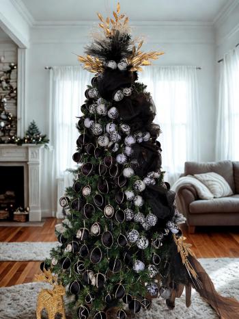 Siyah Yılbaşı Çam Ağacı Süsü - 8 Cm Kadın Figürlü Yılbaşı Çam Ağacı Topu