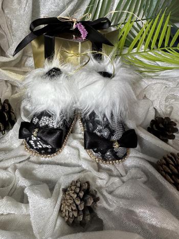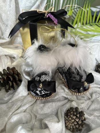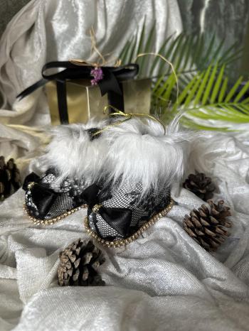 Yılbaşı Çam Ağacı Süsü Siyah Dantelli Patik