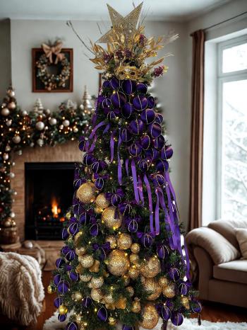 Mor Kadife Büyük Çam Ağacı Süsü - 15 Cm Yılbaşı Çam Ağacı Topu