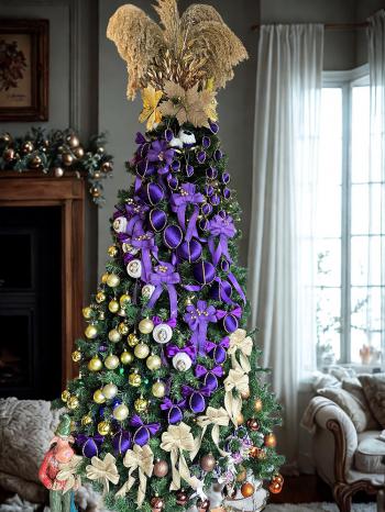Mor Kadife Çam Ağacı Süsü - 8 Cm Yılbaşı Çam Ağacı Topu