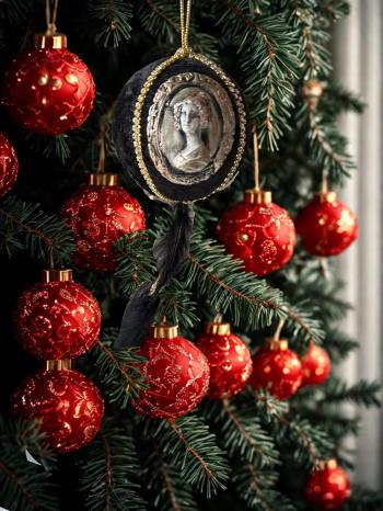 Siyah Yılbaşı Çam Ağacı Süsü - 8 Cm Kadın Figürlü Yılbaşı Çam Ağacı Topu