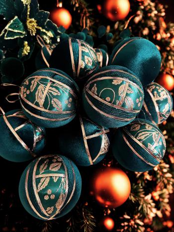 Yeşil Desenli Yılbaşı Çam Ağacı Süsü 10 Cm Kadife Yılbaşı Ağacı Topu