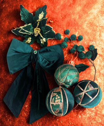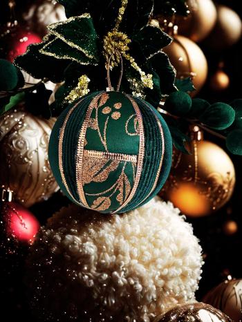 Zümrüt Yeşili Yılbaşı Çam Ağacı Süsü 10 Cm Kadife Yılbaşı Ağacı Topu