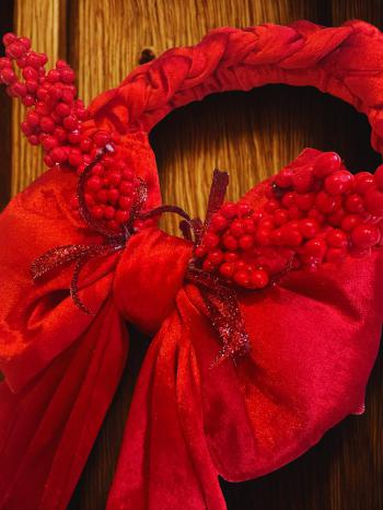 Kırmızı Kadife Yılbaşı Kapı Süsü -Yılbaşı Kapı Çelenk