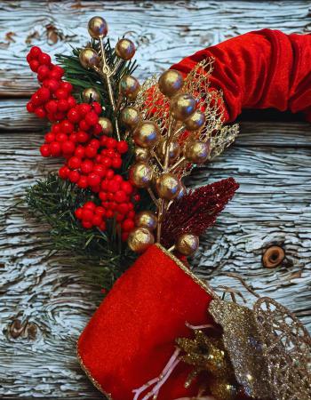 Kırmızı Şık Yılbaşı Kapı Süsü - Yılbaşı Dekoratif Kapı Süsü - Çelenk