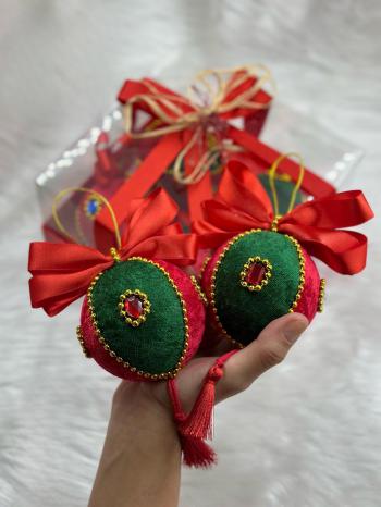 Kırmızı Yeşil Yılbaşı Çam Ağacı Topu - Hediye Kutulu